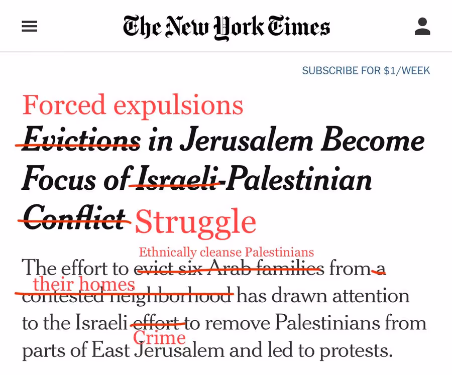 A study analysing journalistic style guides on Palestine found that anti-Palestinian racism has been “standardised as journalistic practice” under the guise of editorial guidelines that prioritise "neutrality and objectivity." For example, the BBC and International Press Institute’s style guides deny or sanitise key Palestinian framings and terms such as Nakba, refugees and even Palestine. Such censorship has intensified during the ongoing genocide in Gaza. A leaked memo from The New York Times instructed journalists to avoid using "inflammatory language," including terms like "genocide," "ethnic cleansing," "massacre," "occupied territory" and "refugee camps"—even in quotations.
